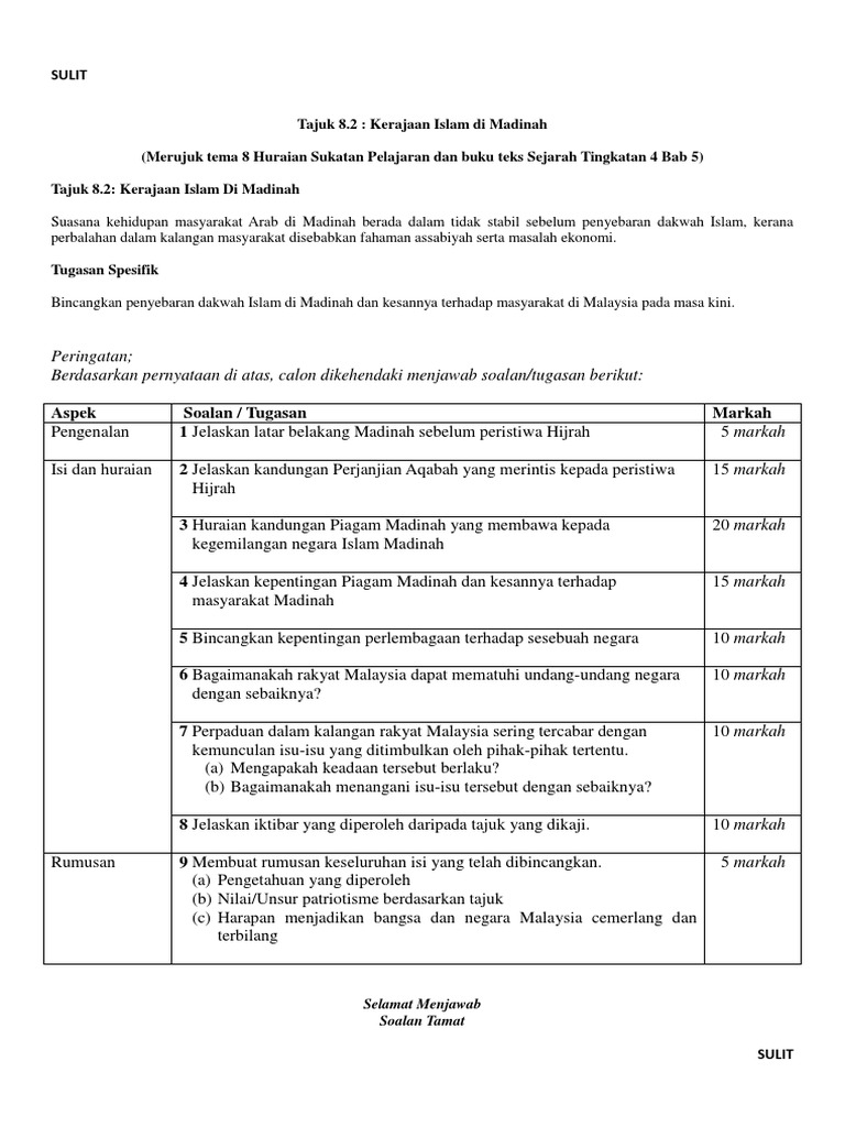 Skema Jawapan Kerajaan Islam Di Madinah Dan Contoh Soalan