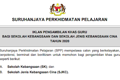 Pengambilan Khas Guru Bagi Sekolah Kebangsaan Sk Dan Sekolah Jenis Kebangsaan Cina Sjkc Tahun 2020