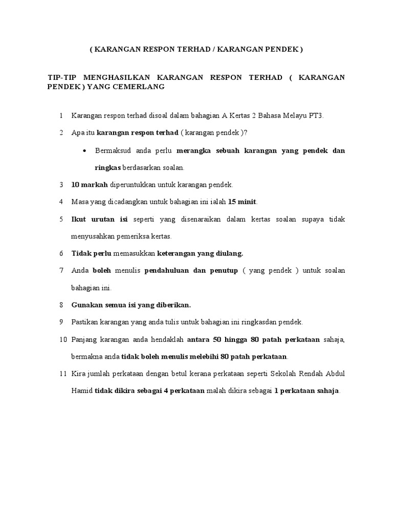 Modul 1 Karangan Respons Terhad Pdf Format Baharu Pt3 2019 Modul Karangan Respons Terhad 1 Karangan Pendek Kertas 2 Pt3 Bahagian A Nota Lengkap Course Hero