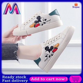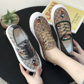Eropah Kasut Loafer Wanita2020musim Bunga Baru Barang Barang Eropah Kartun Mickey Tali Ikat Lapang Kanvas Tapak Rata Rendah Untuk Membantu Kasut Tunggal Shopee Malaysia