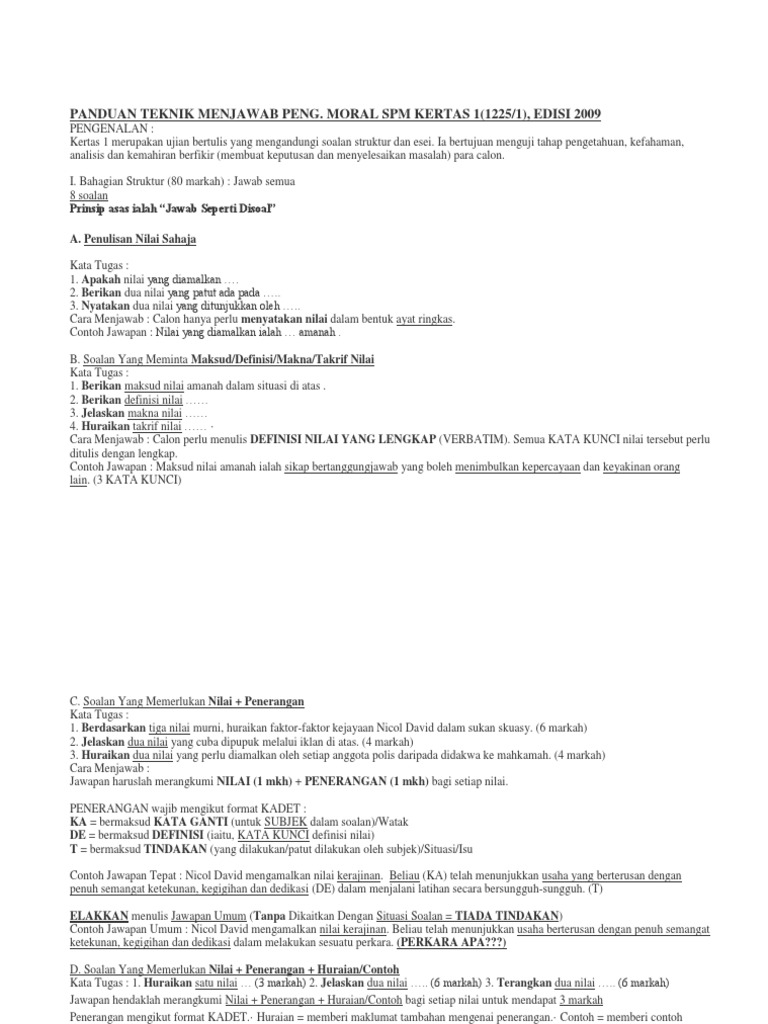 Teknik Menjawab Pendidikan Moral Spm Kod 1225 Bahagian A Soalan Struktur