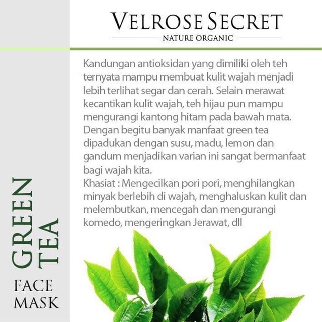 Velrose Secret Face Mask Green Tea Masker Lulur Wajah Di Lapak Gomart Bukalapak