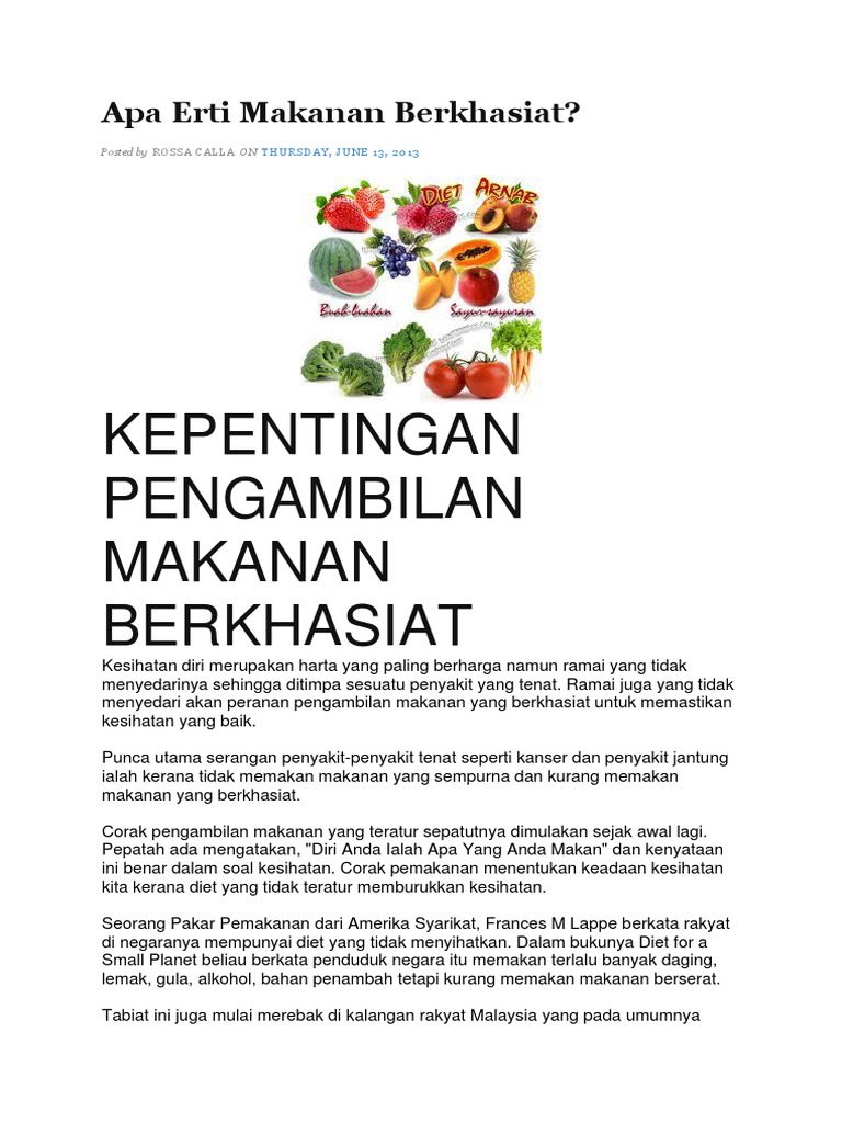 Kepentingan Makan Makanan Berkhasiat Docx Document