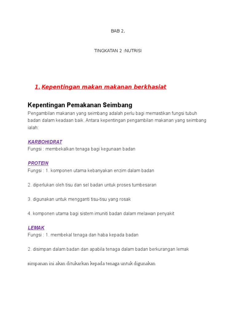 Kepentingan Amalan Pemakanan Yang Sihat Tingkatan 2