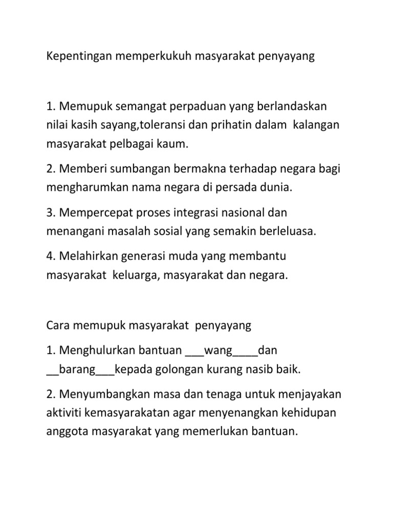 Kepentingan Memperkukuh Masyarakat Penyayang