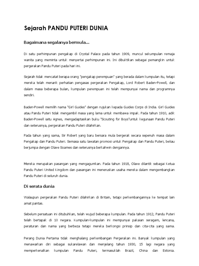 Sejarah Pandu Puteri Dunia