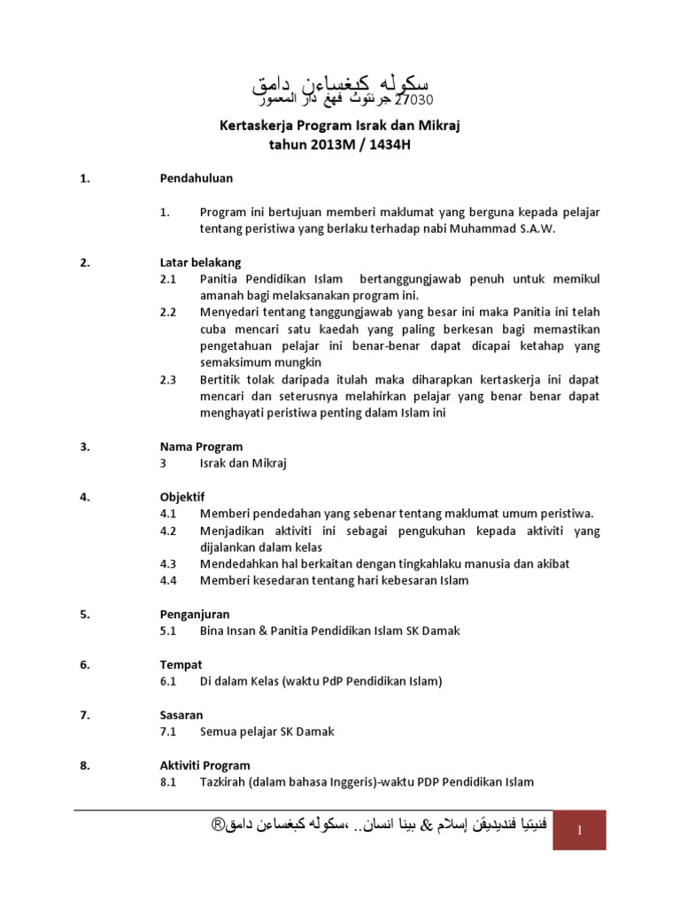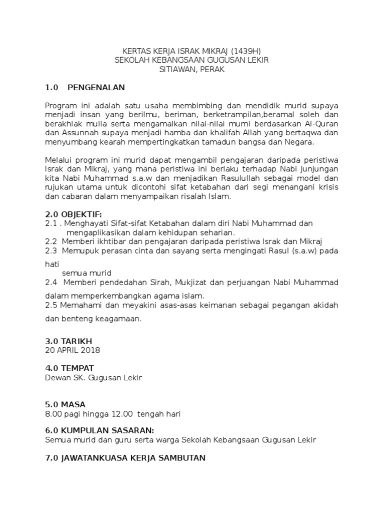 Kertas Kerja Program Israk Dan Mikraj Pendidik2u