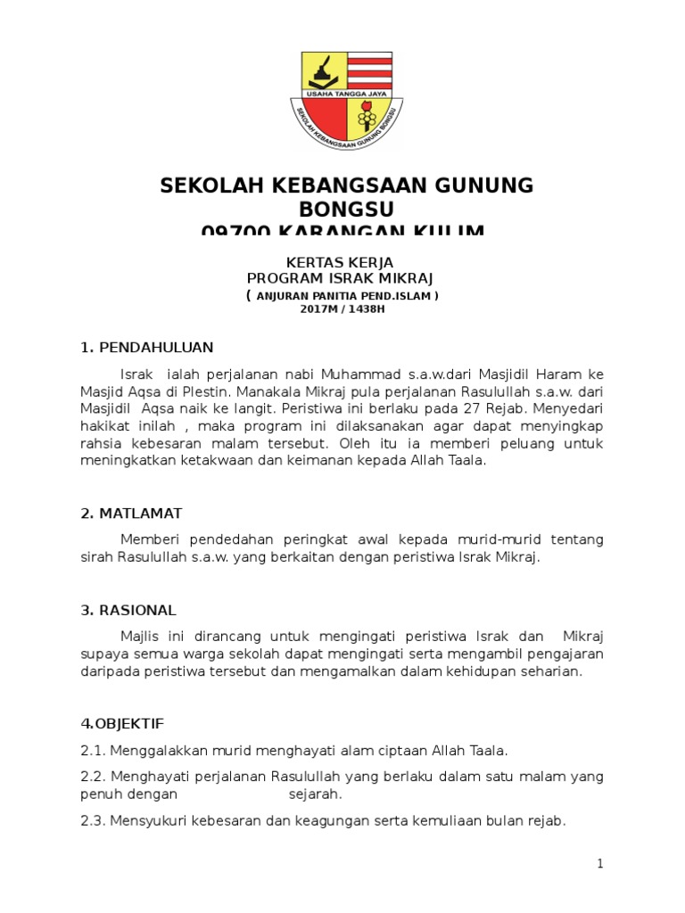 Kertas Kerja Isra Mikraj 2019 Sk Gintong Uploaded By Surayawati Abu Bakar
