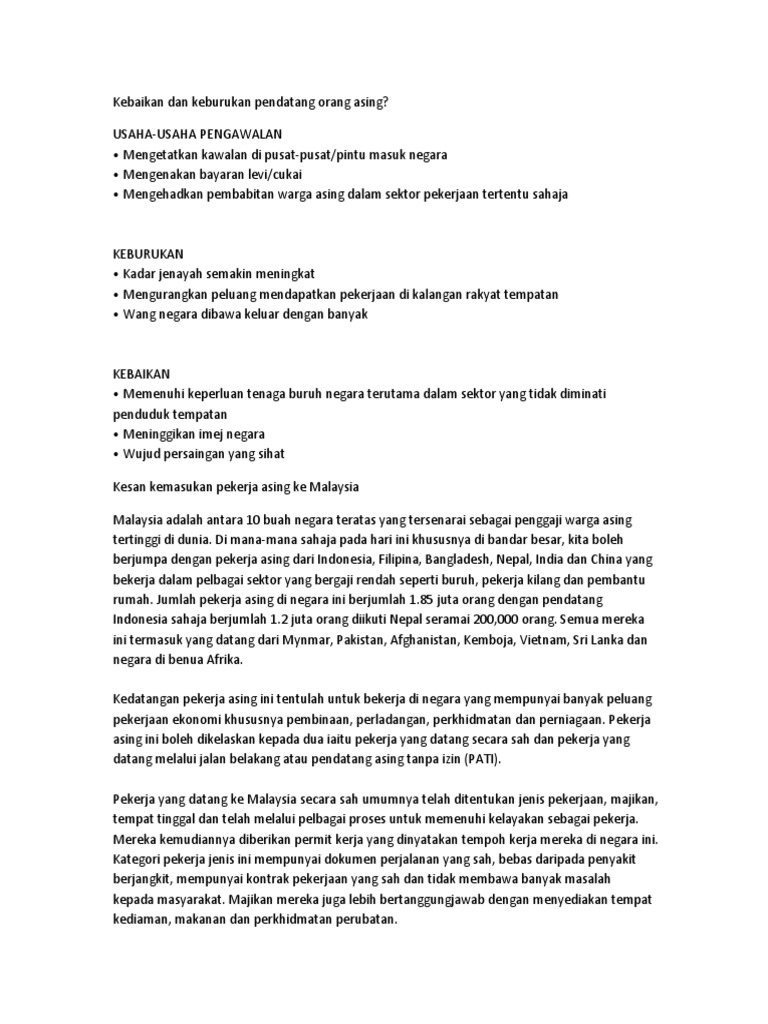 Pdf Impak Kemasukan Buruh Asing Malaysia