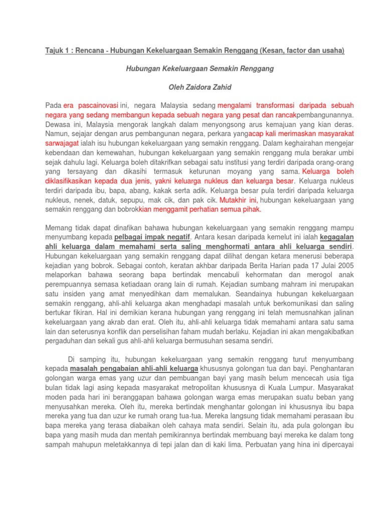 Tajuk 1 Rencana Hubungan Kekeluargaan Semakin Renggang Oleh Zaidora Zahid