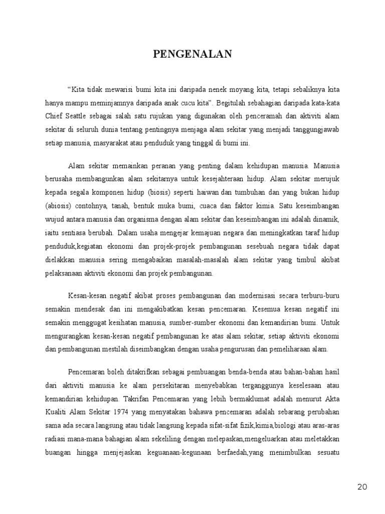 Karangan Tentang Pencemaran Alam Sekitar Docx