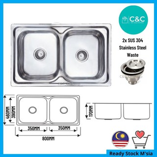 Kitchen Sink Double Bowl Stainless Steel Nicon8050 Shopee Malaysia