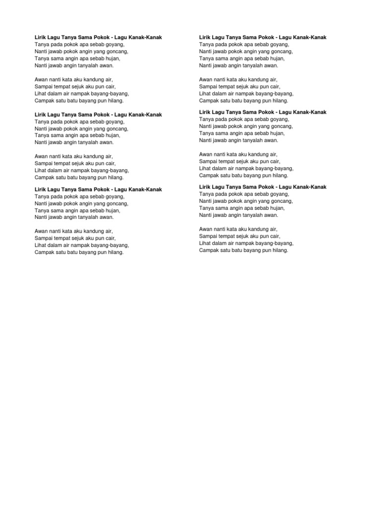 Lirik Lagu Tanya Sama Pokok Docx