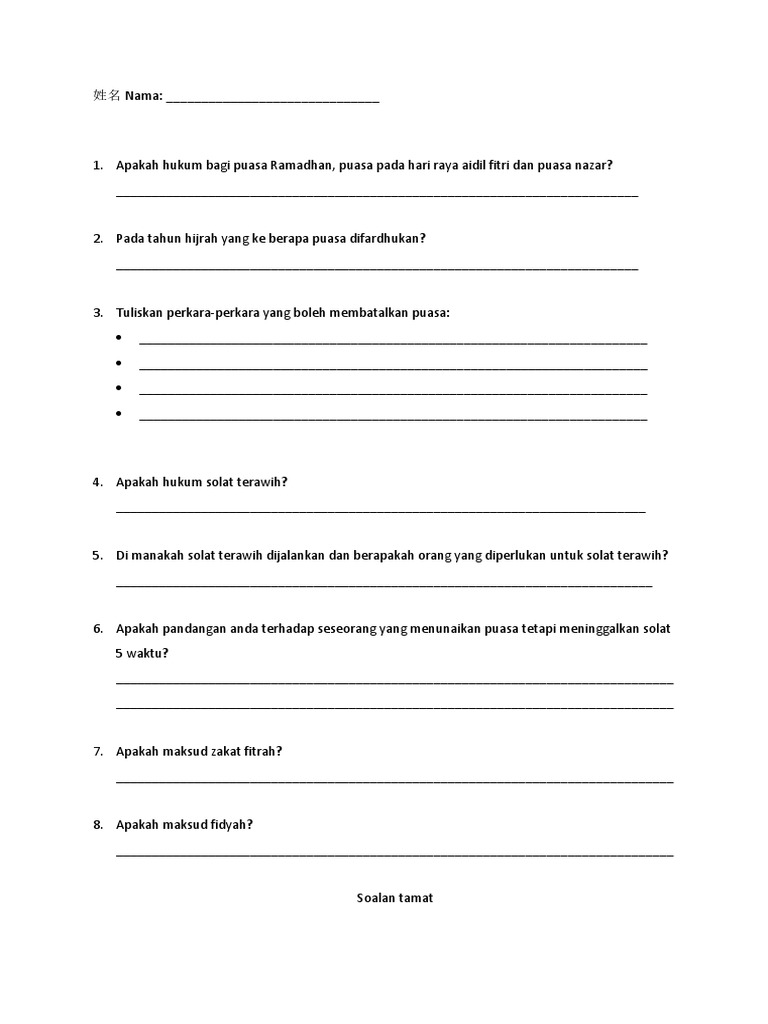 Soalan P Islam Tahun 1 2 3 Shj Facebook