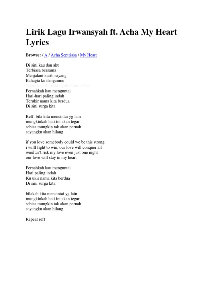 Lirik Lagu My Heart Yang Dipopulerkan Acha Septriasa Feat Irwansyah Sonora Id